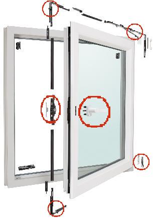 Pilzkopf-Verriegelungen erschweren das Aushebeln des Flügels aus dem Rahmen.